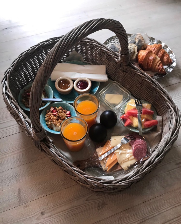 Hvis du gerne vil have morgenmad, så skal du bestille det, når du booker, da vi ikke altid ligger inde med råvarerne. Morgenmad kan tilkøbes for 80 kr. pr. person og består typisk af frugt, blødkogt æg, hjemmebagt brød, fx. grovboller og rugbrød, smør, ost, marmelade, græsk youghurt med hjemmelavet müsli og friskpresset appelsinjuice. Husk at bestille det på forhånd.